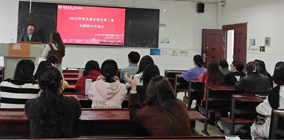 为深入学习贯彻习近平总书记关于教育的重要论述,巩固党员基本培训第二课学习成效,2025年11月7日,公共卫生学院研究生党支部组织召开专题研讨交流会。会议由党支部书记周军华主持,支部全体党员参加。