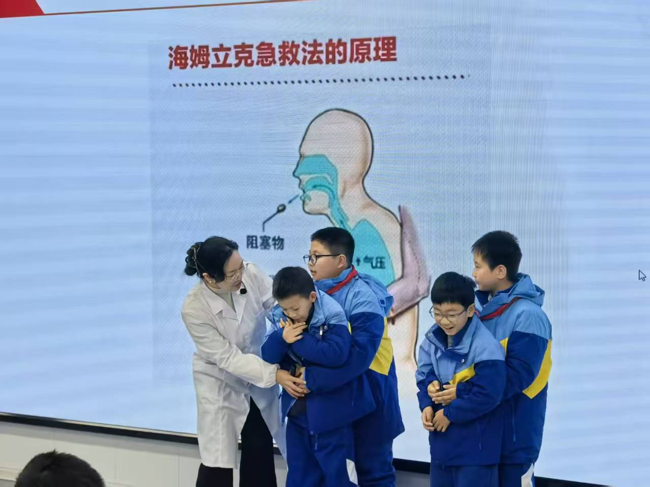 培训伊始,刘丽华老师以真实新闻案例为切入点,深入浅出地阐述了海姆立克急救法在气道异物梗阻应急处置中的关键作用。她通过细致的原理讲解与现场标准示范,帮助小学生们理解急救的科学内涵。在实践环节,多名同学踊跃上台,在“剪刀、石头、布”的口诀指导下,初步掌握了这一挽救生命的核心手法。