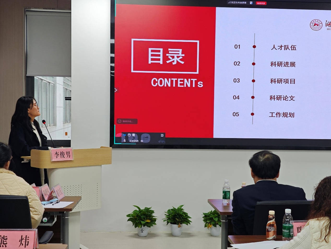 之后,重点实验室主任杨小平教授围绕平台建设、科研进展、成果转化、人才队伍与开放交流等方面,系统汇报了实验室2025年度的整体建设与运行情况。随后,实验室研究骨干李俊男、胡立庆、陶晓军、彭微四位老师分别就实验室布局的四个核心研究方向,详细汇报了各团队年度取得的重要研究进展与突破。