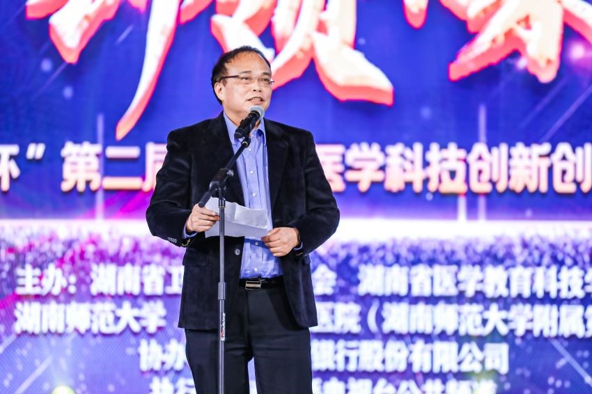 2020年12月5日上午,由湖南省卫生健康委员会、湖南省医学教育科技学会主办,湖南师范大学和湖南省人民医院(湖南师范大学附属第一医院)联合承办、长沙银行协办的第二届湖南省医学科技创新创业大赛决赛在我院开幕。开幕式由省卫生健康委员会科教处处长石国勇主持,湖南省人民医院(湖南师范大学附属第一医院)党委书记唐建明致辞,副校长匡乐满宣布大赛决赛开幕。