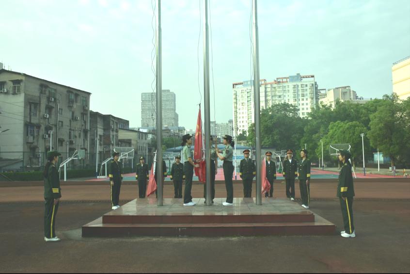 升旗仪式在庄严的国歌声中拉开了序幕,伴随着激扬的《义勇军进行曲》,全体师生肃立,面向国旗,高唱国歌。