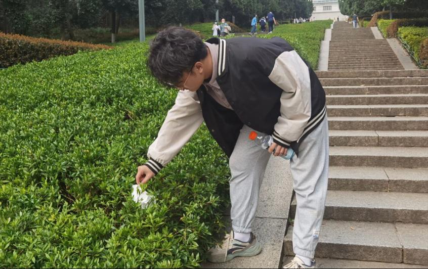 活动过程中,班级成员作为志愿者,分组捡拾、清扫烈士公园各区域的垃圾,对垃圾进行回收分类,并针对市民在烈士公园游玩时出现的不文明现象进行劝导,提高市民的文明意识,呼吁大家爱护环境,做文明的宣传者。随后班级成员走近烈士纪念塔,在纪念塔前默哀一分钟,寄托对烈士无限的追思、缅怀与敬意,培养自身献身精神和爱党爱国情怀。