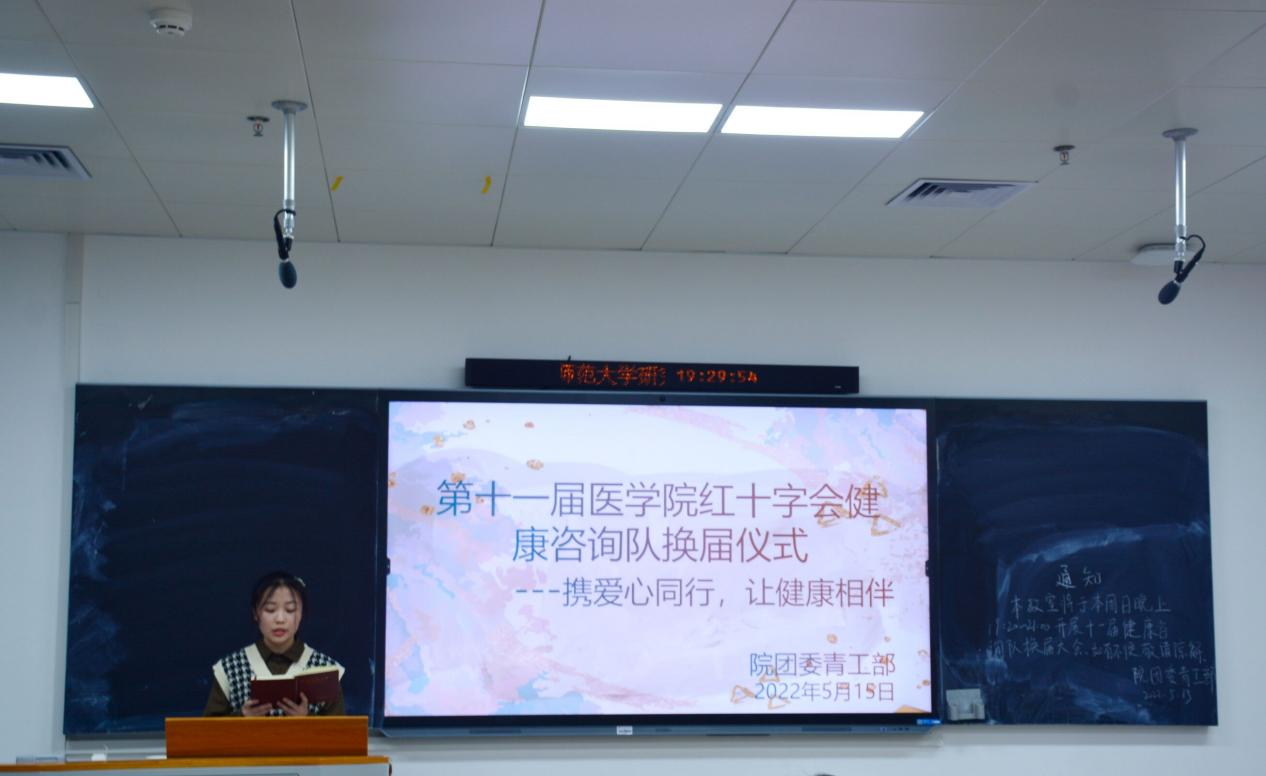 5月15日晚,我院团委青年志愿者工作部于综合楼302教室举行了携爱心同行,让健康相伴——第十一届健康咨询队换届大会。院团委学生副书记童海,院红十字会秘书长文阳冰宇出席此次活动,健康咨询队全体成员参加。