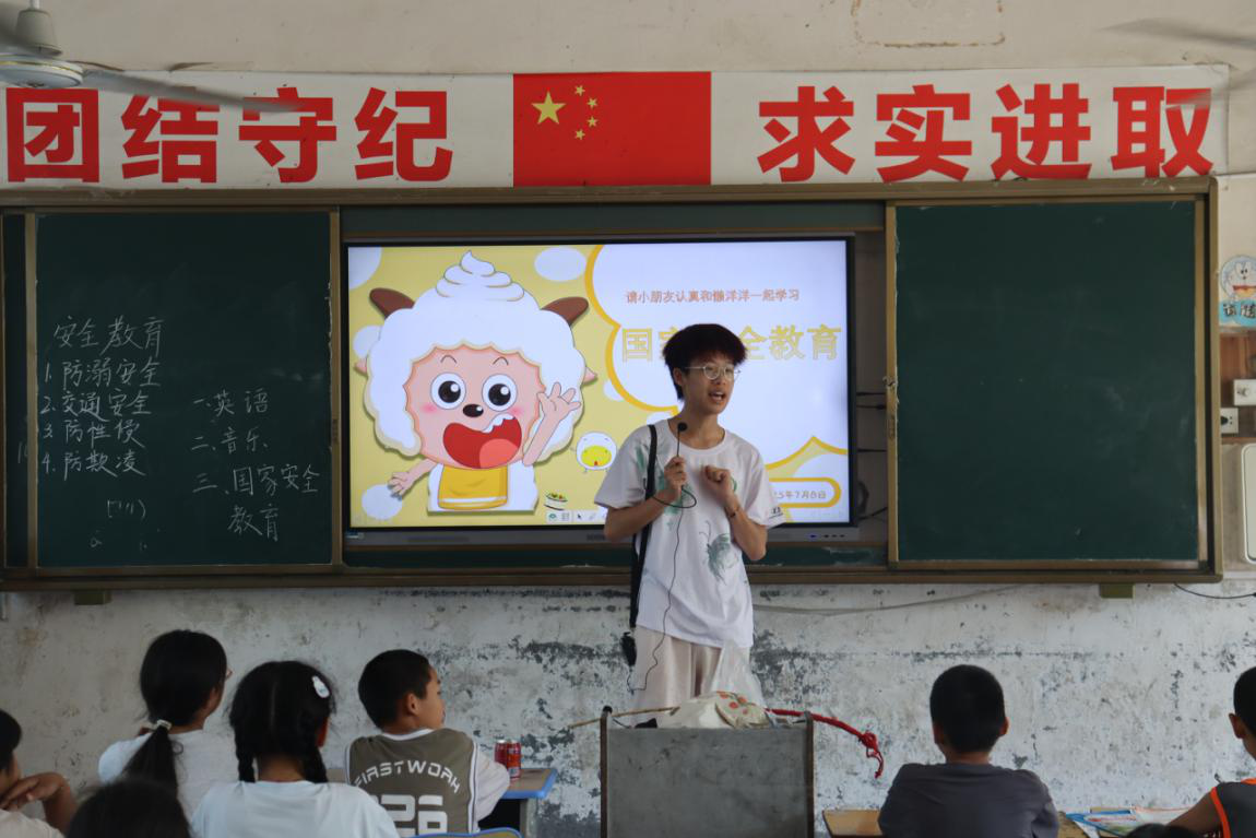 为了增强学生们的国家安全意识,培养他们的国家安全观,7月7日上午,医学部“天使在人间”三下乡实践团队在麻溪铺镇九校开展国家安全教育课程。实践团成员杨瑞、田树蕙担任此次课程的授课老师。