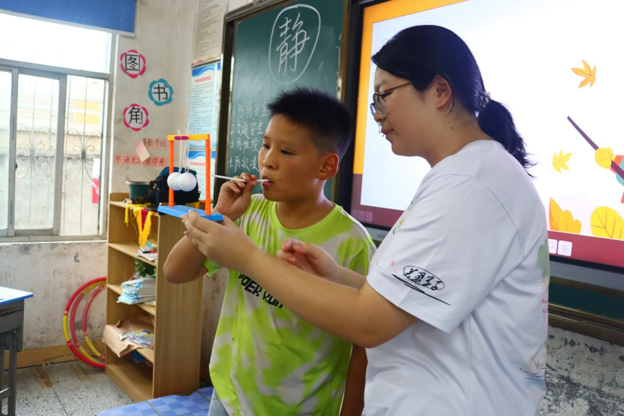 为普及科学知识,7月12日上午,医学部“天使在人间”暑期社会实践团在麻溪铺镇九校开展趣味科学实验课程。实践团成员陈小茵、范沣仪担任授课老师。