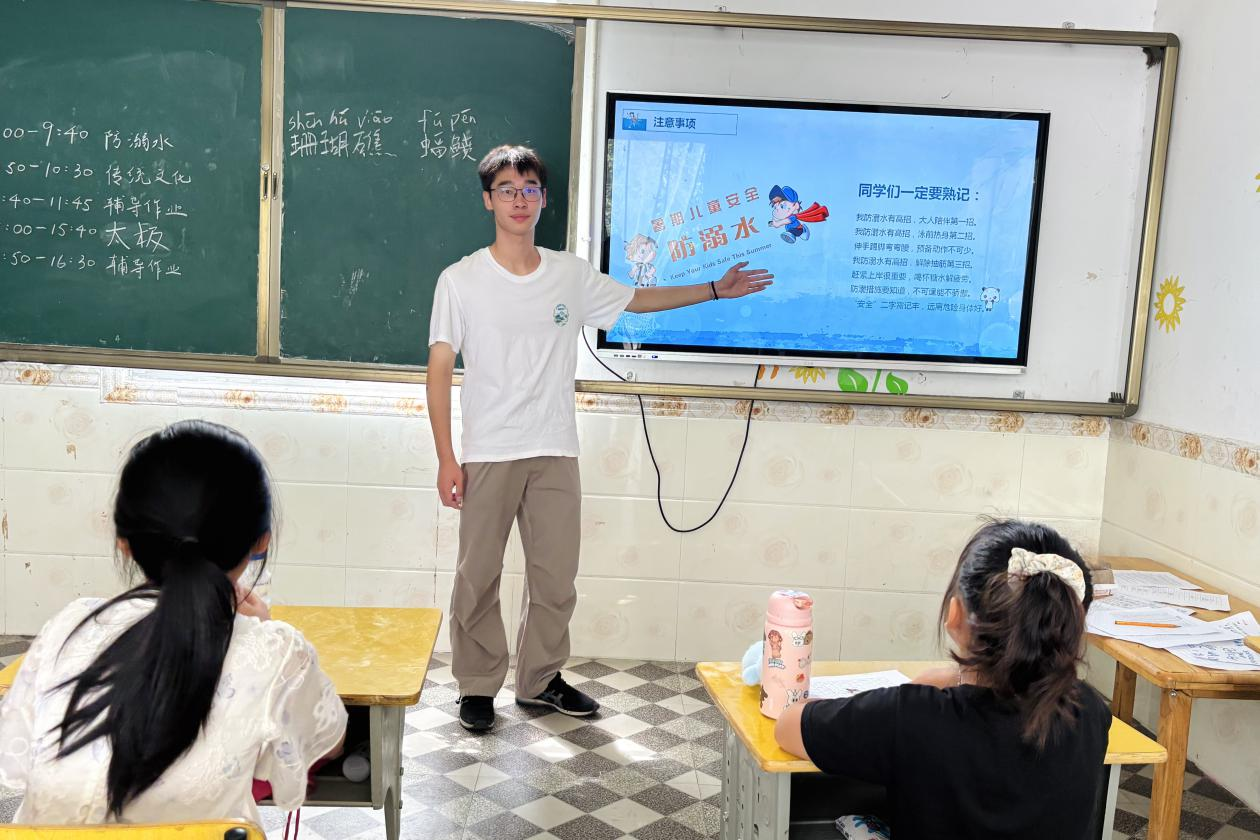 为增强儿童安全防范意识,普及溺水自救与互救知识,7月15日上午,“湘医传方”暑期实践团于李家庄村开展儿童防溺水课程。实践团成员肖遥担任此次课程的授课教师。