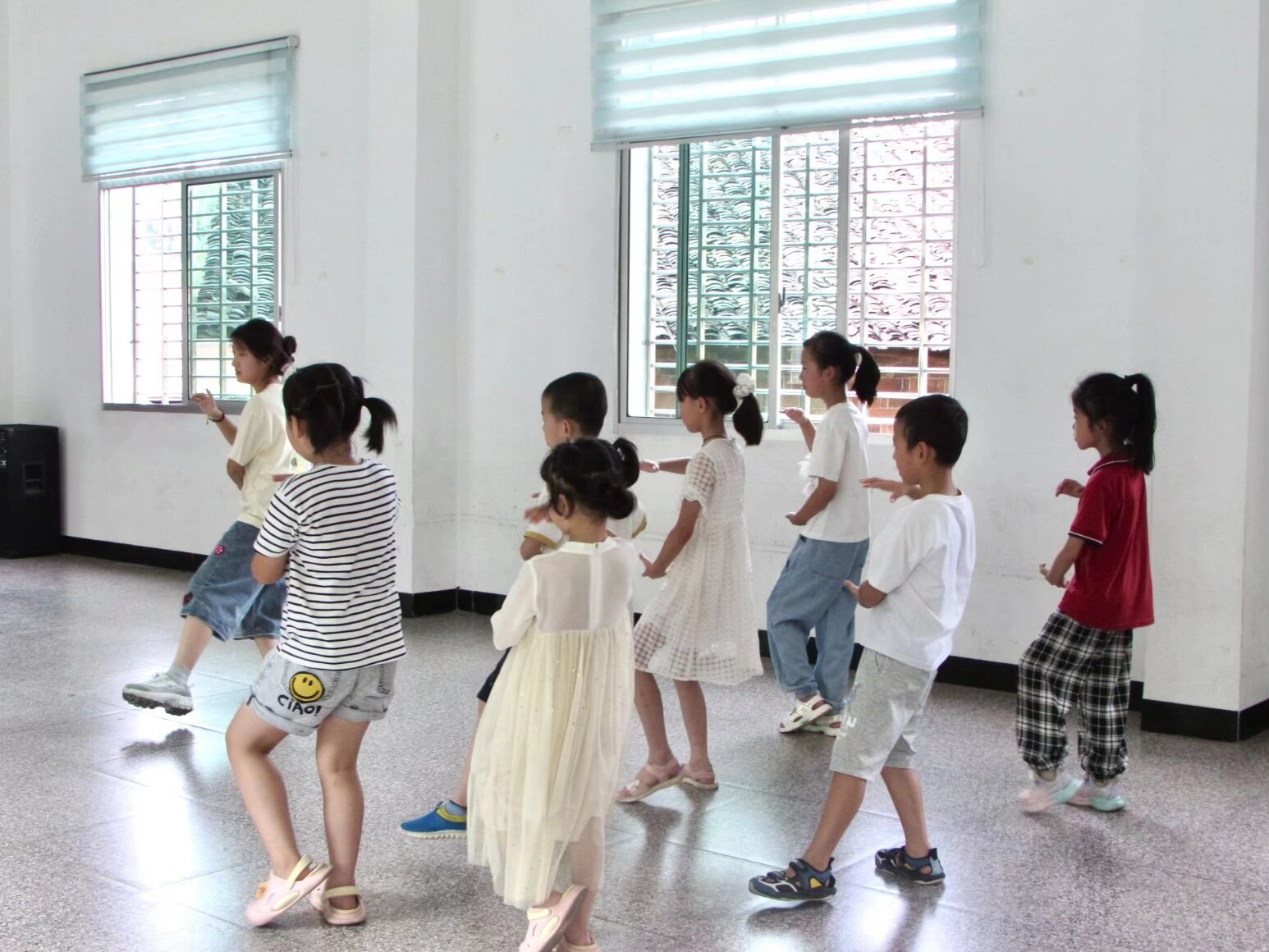 太极拳课程中,实践团成员彭子芮将复杂的动作拆解成简单易懂的步骤,带领孩子们感受传统武术的魅力,并用"云手如推窗""野马分鬃似牵绳"等形象比喻帮助记忆。教学中,她特别说明了"动静结合"的理念,引导孩子们在舒缓的一招一式中体会气息的流动。孩子们跟随她的指导,渐渐进入了状态,动作也越发流畅自然。
