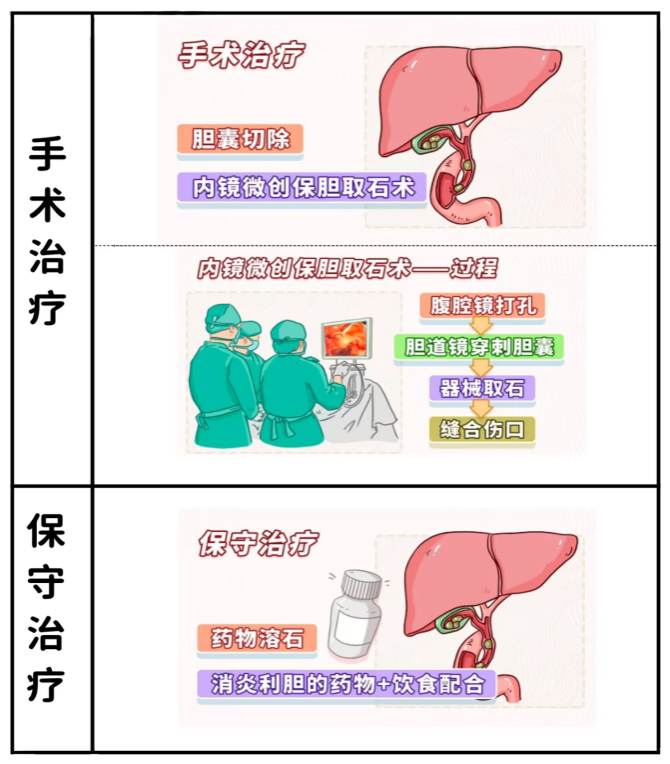 目前,胆结石主要靠西医治疗,一般通过手术取石、药物碎石、溶石等治疗手段。溶石是当前最直接有效的治疗方法。【3】有的胆结石成形时间较长,看上去胆囊无明显病变,甚至没有任何感觉; 有的会使胆囊内膜病变让身体不适,引发慢性或急性胆囊炎,如果胆管被结石堵塞的话后果就很严重了,必须采取专业治疗。