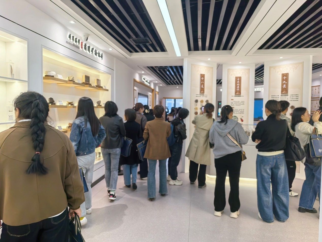 下午的参观活动则更注重实践与探究。同学们在讲解员的引导下,细致观察了真伪鉴别标本、毒性药材展区以及道地药材智能沙盘,并通过“中药数字标本互动系统”自主查询中药信息。随后,大家走进显微形态学实验室,使用智能显微镜观察药用植物切片,深入了解药材的微观结构,进一步巩固了课堂所学知识。
