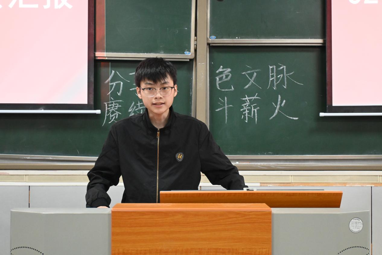 在李妍慧致辞后,六个小组的红色文脉分享汇报依次进行。岗位一组汇报人曾沛葵围绕《可爱的中国》,分析了方志敏的多元身份与著作的创作背景;岗位六组汇报人谢依米以“品读红色家书”为主题,讲述了家书故事及其时代回响;岗位八组汇报人朱思琪介绍了《白求恩传》的历史价值与白求恩精神的当代启示。随后,团委一组汇报人柳志镔阐述了“红岩精神”的内涵与传承;学生会一组一组汇报人许爽梳理了奋斗薪火的历史脉络与时代价值;青传一组汇报人卢金钰和肖怡则解析了小说《红岩》的叙事结构、人物群像及其多重价值。汇报结束后,主持人致结束词。