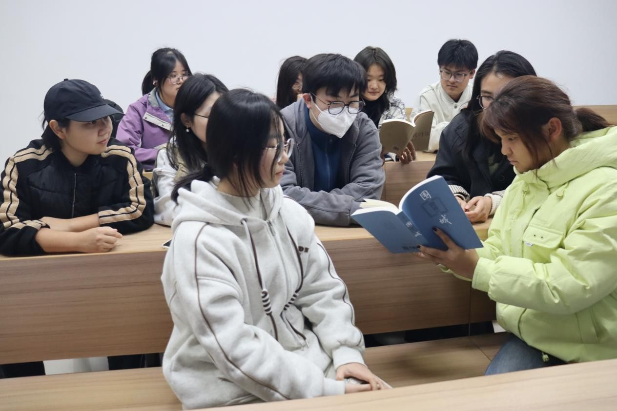 在活动的后半程,同学们拿出各自喜爱的书籍,诸如《围城》《我们仨》等经典著作。他们翻开书籍,向其他同学分享自己钟爱的语句以及个人的理解,交流感悟,并提出疑问。