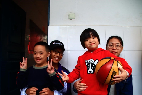 在此次志愿活动中,有往期参加过关爱唐氏宝宝志愿者活动的大二志愿者,也有初次参与志愿者活动的大一志愿者。在二十名志愿者到达咸嘉湖社区服务中心后,服务中心负责人向志愿者们说明了注意事项以及如何应对课堂上的突发状况。篮球课开始前,志愿者首先与唐氏宝宝一对一组队,与孩子们建立了基本的认识。随后,孩子们在走廊上跑步热身,志愿者们拿着每个孩子的篮球在旁陪伴。当孩子们不小心摔倒时,志愿者迅速扶起孩子们并耐心安慰。志愿者与孩子们一起进行了拍球,运球,打篮球等等一系列活动,陪伴孩子们度过了一下午时光。
