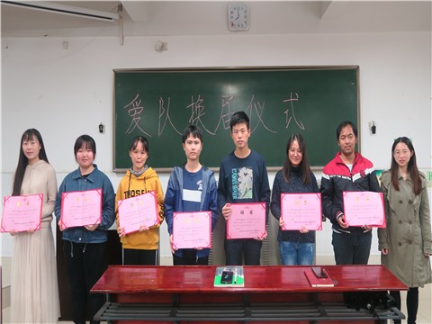 仪式最后,何健乐为16级的老队员颁发聘书,许悦为第十一届爱心服务队队长授旗。