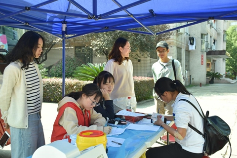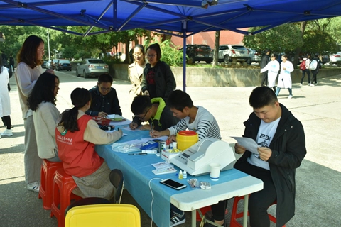 10月18日,由我院青年志愿者工作部举办的“奉献我热血,爱心满校园”志愿活动于我院篮球场开展。