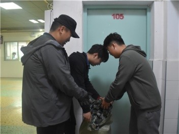 在跑酷协会负责人郭妙兰的安排下,全体志愿者分为男女两组分别前往男寝二栋及女寝一栋回收军训服。在简单的表明来意后,18级新生将洗净的军训服折好,一名志愿者将衣物规整的放到提前准备好的蛇皮袋里,并将回收物品进行分类,军训鞋和衣物分别放在不同的袋子里,另一名志愿者对捐献衣物的新生进行登记。由于前期宣传到位,回收活动不出半个小时就完成了,志愿者统一前往大礼堂清点回收的军训服,共收集了15袋,50余件军训服,全体志愿者于大礼堂前合影留恋。