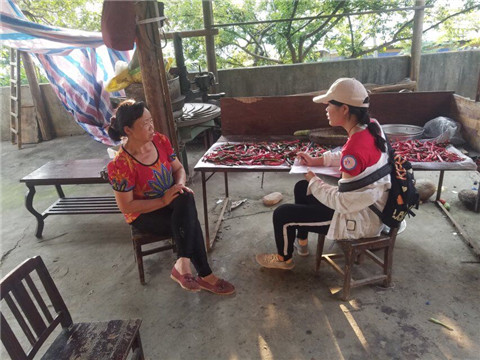 实践团安排三名队员在学校负责做饭,其余队员都会在调研组组长邓洁的带领下去到塘玄湾镇及其附近各乡镇进行调研活动。为了解当地居民患癌症率,普及相关知识,调研队员不仅从当地环境展开调查,还询问了当地村民的家族史里面是否有肿瘤病患者、自身是否有患过重大疾病等问题。