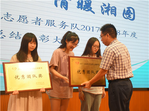 2018年5月26日上午,青年志愿者工作部携志愿者们一同前往湖南图书馆参与湖南图书馆文化志愿者服务队2017-2018年度总结表彰大会,湖南图书馆馆领导为优秀志愿者及优秀志愿团队颁奖。