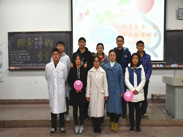 活动伊始,主讲人巫琳对护理专业知识进行了简要概述,引发了在场医学生们对于相关血压血糖知识的关注。巫琳还介绍了高血糖、高血压的具体病症,以及护理高血压高血糖病症患者的注意事项和有关的治疗方法。在活动过程中主讲人周美玲对血压的测量以及血型的判断方法和相关病症进行了介绍。介绍中,健康咨询队队员周小归、陈志强分别对在座的两位位观众进行了血压的测量与血型的判断,并同步讲解了相关事项。