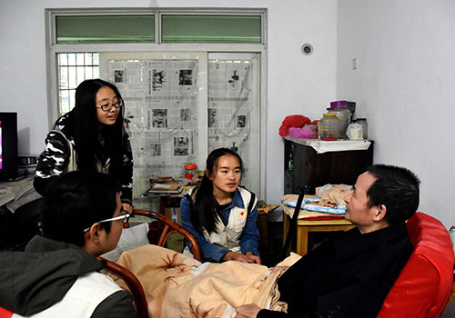 陈景茹常年一人在家,又患有帕金森、糖尿病等多种疾病,靠低保与社保生活。到达老人家中后,部分队员开始有序地帮老兵清扫房间,如擦窗、拖地、洗碗等。因风湿严重,陈景茹行动不便,队员申婷在他身旁小心搀扶,待老人坐稳后才坐在老人身旁嘘寒问暖,听老人叙述他的日常生活。活动过程中,志愿者们偶尔的一个小笑话,把老人逗得哈哈大笑,屋子里充满欢声笑语。在离别之际,老人感谢了我院志愿者的到来,并表示此类陪伴活动让作为退伍老兵的他深刻地感受到了人文主义关怀。