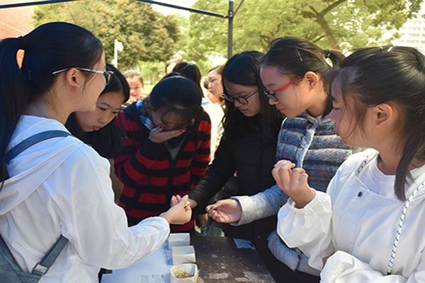 10月15日上午,由我院医学社主办以“发扬医学”为宗旨、传承中医药文化的“闻香识药材”活动在院内排球场举行,。
