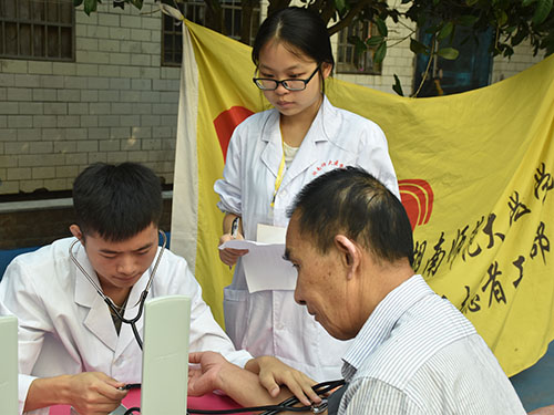 9 月 23 日上午,我院青年志愿者来到岳麓区先锋社区,开展"爱之翼,守护健康在行动"义诊活动。