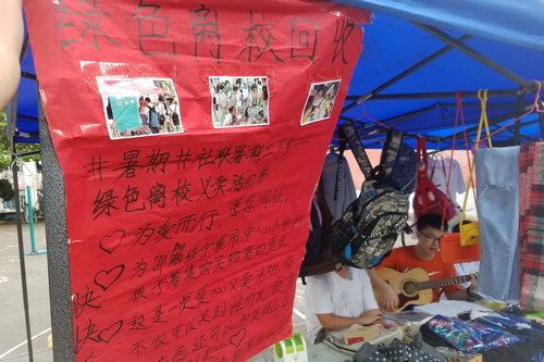6月11日7:30到18:30我院学社联赴邵阳绥宁三下乡队伍在我院中球场进行了摆点义卖活动,此次活动是为了给三下乡目的地邵阳绥宁寨市中心小学的小孩子筹集物资。