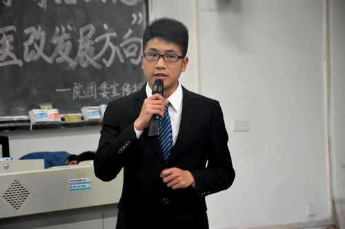为响应两会医改政策,4月21日晚7点整,我院团委宣传部于我院勤医楼七教室开展以“谈‘两会’医学前沿动态,辩‘城乡’医改发展方向”为主题的第309期春季红色论坛。出席此次论坛的有院学工办张明明老师,院团委学生副书记周星宇,主讲人为胡芝、郑哲、唐欣、冯腾云。