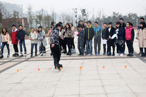 2016年12月11日下午,我院跑酷协会组织会员在西湖公园进行了“滑响翼”轮滑竞技活动。