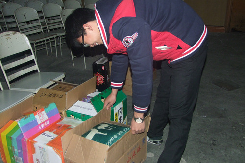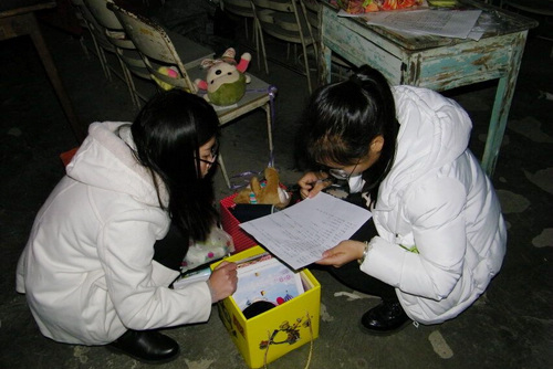 12月10日下午5点,我院的志愿者们正在院大礼堂内清点和包装由我院学生送来的各式礼物,由我院青年志愿者工作部组织开展的“圣诞老人的礼物”爱心活动进行中。