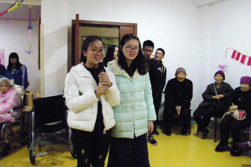 12月10日14时30分,我院青年志愿者工作部和艺术社于红枫敬老院为老人开展“爱心之旅――传递温情”义演活动。青年志愿者工作部的志愿者与艺术社成员参加此次义演活动。