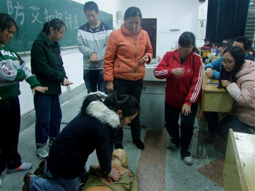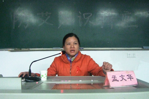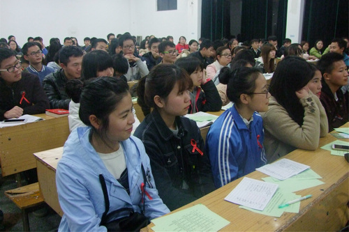 活动开始前,主办方为参加活动的同学分发红丝带,并进行艾滋病知识“国八条”测试。随后,主持人致辞,讲座正式开始。孟文华阐述了五个方面的问题。第一,介绍了我省艾滋病的一些基本情况和特点。第二,解释了艾滋病的发病机理。第三,讲述了艾滋病的三种主要传播方式,即性传播、母婴传播和血液传播。第四,告诉了大家预防艾滋病的一些措施并叮嘱大家养成良好的生活习惯。第五,孟文华提倡大家对艾滋病患者要以平常心态对待,并给予他们应有的尊重和关怀。活动最后,孟文华和她的助理为现场医学生普及了常用的急救知识,且进行了急救应急示范,还指导了医学生体验如何急救。至此,此次讲座顺利结束。