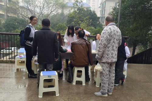 2016年12月3日上午9点,我院青年志愿者工作部组织志愿者和我院健康咨询队来到了城市森林小区开展“爱之翼—守护健康在行动”活动,为社区居民们提供免费测量血压、血型以及血糖等服务。