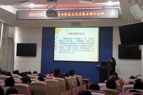 12月4日9点整,我院青年志愿者工作部组织我院志愿者前往湖南省图书馆参加由志愿者服务队负责人黄建红、郭幺艳主讲的湖南省图书馆第四季度文化志愿者培训注册讲座。我院20余名志愿者、其他兄弟院校的志愿者以及部分中学生志愿者参加了此次培训讲座。