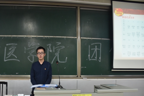 活动之前,主持人周星宇向各位代表介绍团代会以及其职权。伴随着庄严的国歌声,此次团代会正式拉开序幕。首先,主持人宣读了我院参加第19次团代会候选代表名单及介绍投票须知。在座145位代表投票后,计票员、唱票员、计票员进行现场唱票、记票。在唱票、记票的过程中,李强就此次会议发表讲话。他首先肯定了近几年来我院共青团的工作,然后对在座各位共青团员代表提出了五点希望,希望同学们树立正确的世界观、人生观、价值观,志存高远、珍惜时间、开拓进取、遵纪守法、追求光明。此次会议选出了包括李强在内的18名团代会代表。最后,全体代表起立共唱团歌,至此,此次会议结束。