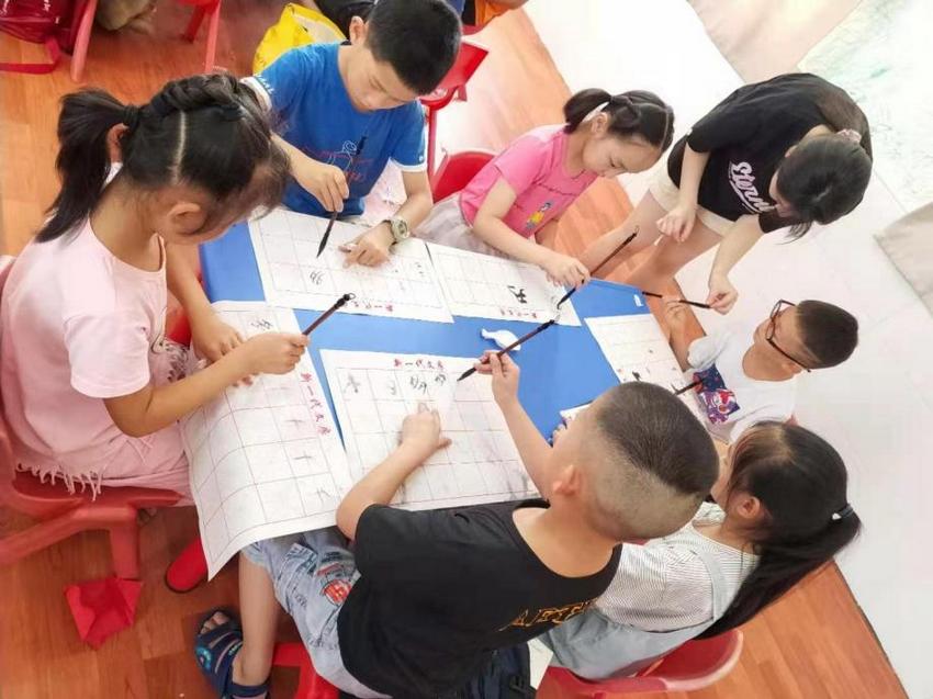 教学中,队员们积极开展了英语素质教育、趣味数学、历史文化等专业性课程,为小朋友们巩固基础,同时辅以毛笔书法、简笔绘画、创意手工、电影赏析、户外拓展等趣味课程,引导他们拓展思维并学习自主思考,培养他们的自信心和创造力。