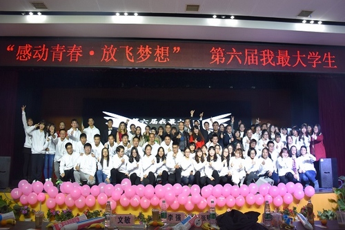 11月26日晚7点,由我院院学生会女生部主办,文学院、教育科学学院和法学院女生部共同协办的第六届“感动青春,放飞梦想”我最大学生决赛在江边活动中心举行。我院团委副书记李强老师、 我院学工办文敏老师 和张明明老师、教育科学学院学工办白路宁老师 , 各兄弟学院的学生会主席 、我院第十四届团学主席团、 我院第十三届学生会委员出席并担任评委。邓佳婷、李阳、 李法权、王溢四人担任主持人。