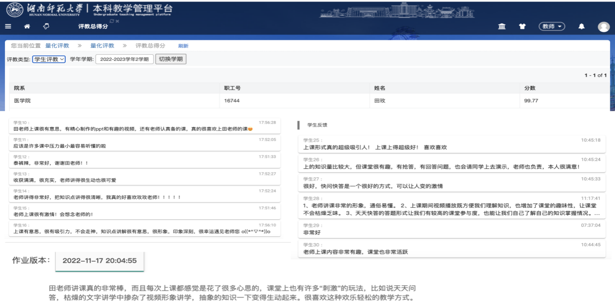 这些充满创意的方式,不仅打破了传统医学课堂严肃的氛围,更在潜移默化中激发了学生对学科探究的欲望和创新性思维。长此以往,这种别样的教学方式让田玫老师逐渐形成了活泼风趣的教学风格,不仅广受学生好评,而且被评为国家级一流本科课程,这让田玫老师深感自豪,也成为医学部办学成果的精彩缩影。